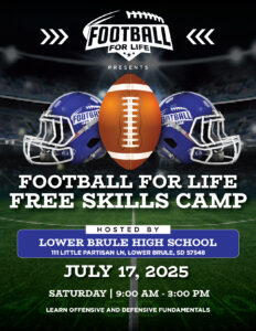 Camps Register for the Football for Life/Softball for Life Camps at Monument Valley here Register for the Football for Life Camp at Lakota Tech here Register for the Football for Life Camp at Todd County here Register for the Football for Life Camp at Lower Brule HS here Register for the Football for Life Camp at Tiospa Zina here